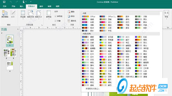 相比其他的office软件,publish有丰富且好看的配色方案,在页面设计/方案中选择喜欢的颜色.