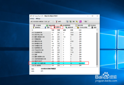3、单击屏幕上方健康状态选项,屏幕上会出现一些数据,这些数据就是磁盘健康状态的相关数据