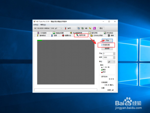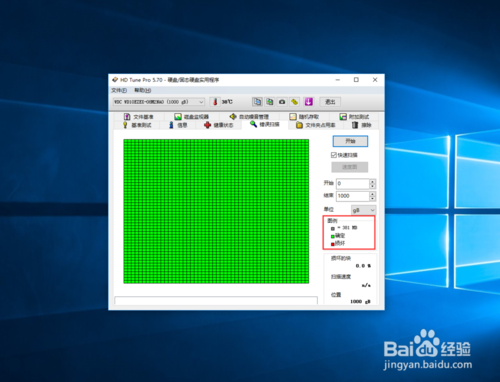 2、错误扫描就是扫硬盘有没有坏道,如果硬盘上有坏道会导致系统卡顿死机这一类的现象。如果有在HD Tune表现就是显示示红色的小方块。正常会显示示绿色的方块