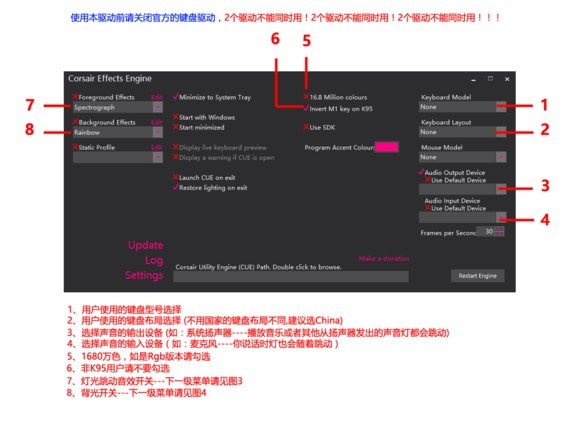 Corsair Effects Engine是海盗船音乐律动软件,简称“CEE”,适用于海盗船K70 RGB、K70 LUX RGB 、K70 RGB MK.2、K95等RGB游戏键盘,可以使键盘灯光跟随电脑播放的音乐闪动,非常酷炫。【软件特点】