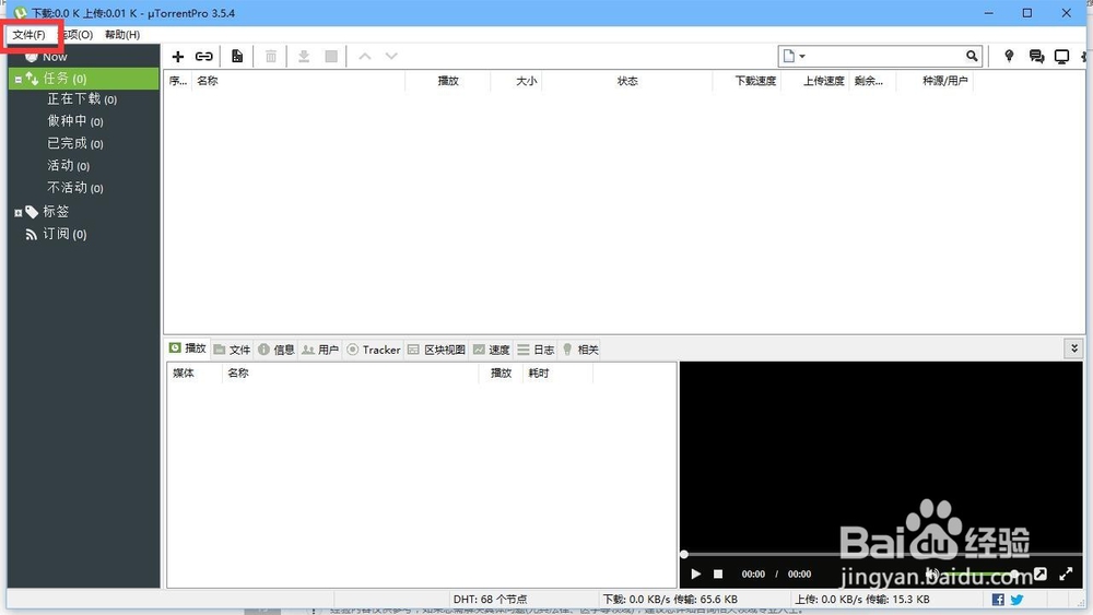 1、打开我们已经安装好的uTorrent下载工具。然后点击文件菜单,在它的下拉菜单中选择“制作uTorrent”选项。