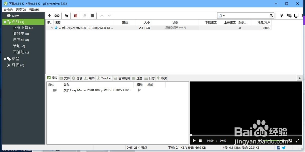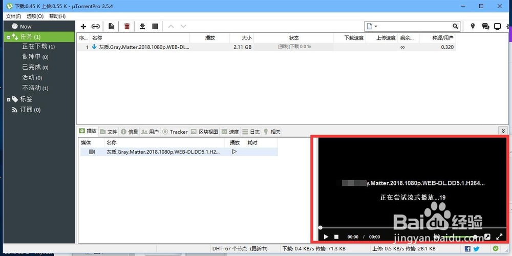 4、然后uTorrent开始下载磁力链中的文件,耐心等待。