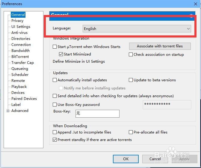 utorrent pc版怎么设置中文?utorrent设置成中文的方法教程: