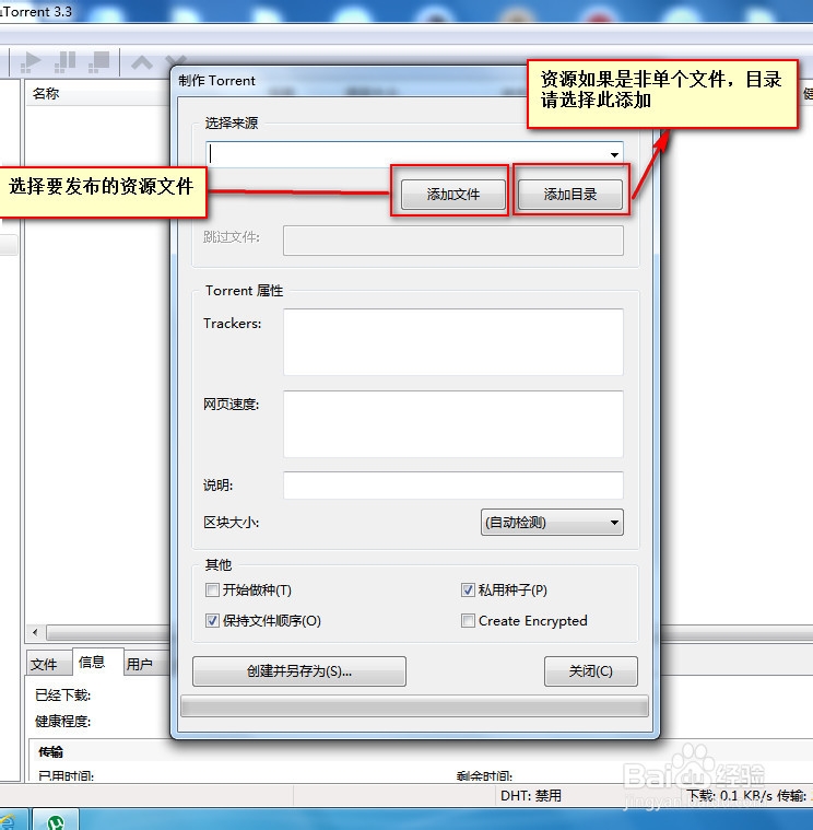 选择要发布的资源文件(电影或其他资源等),详细见截图和说明: