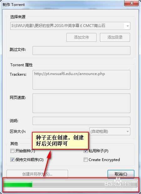 创建种子过程如下图,创建完成后关闭即可。