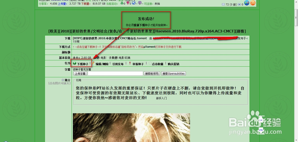 发布成功提示:必须重新下载种子