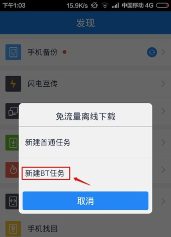 免流量离线下载中选择这里的新建BT任务。