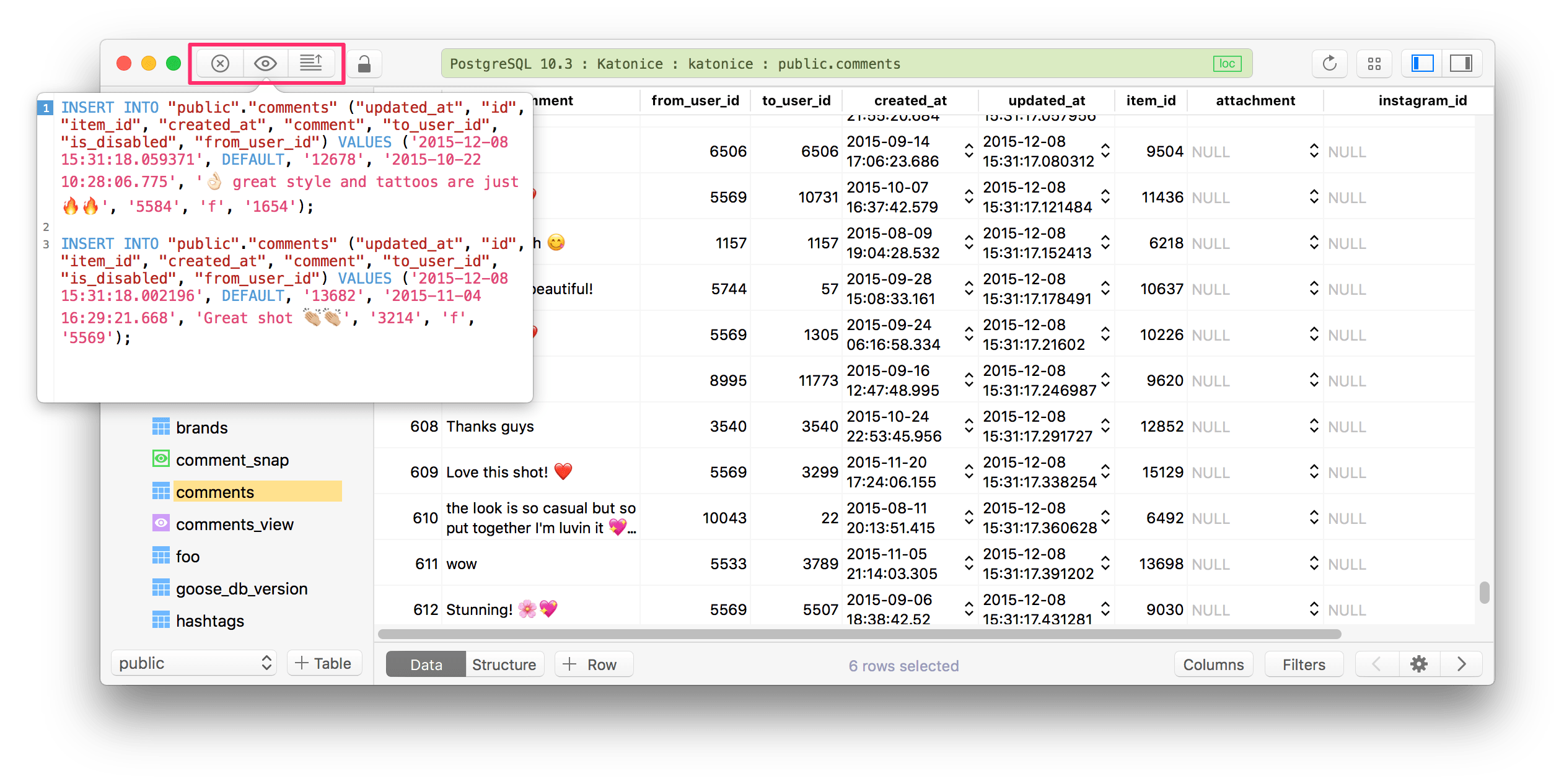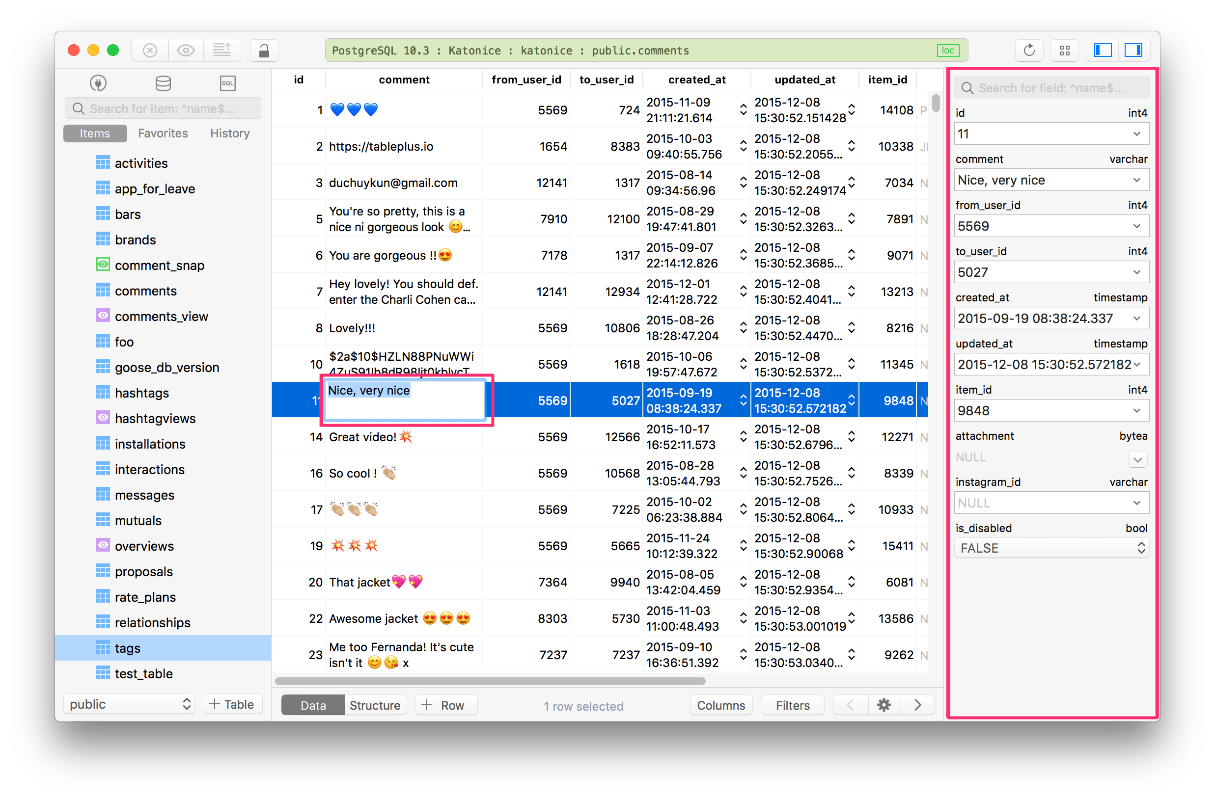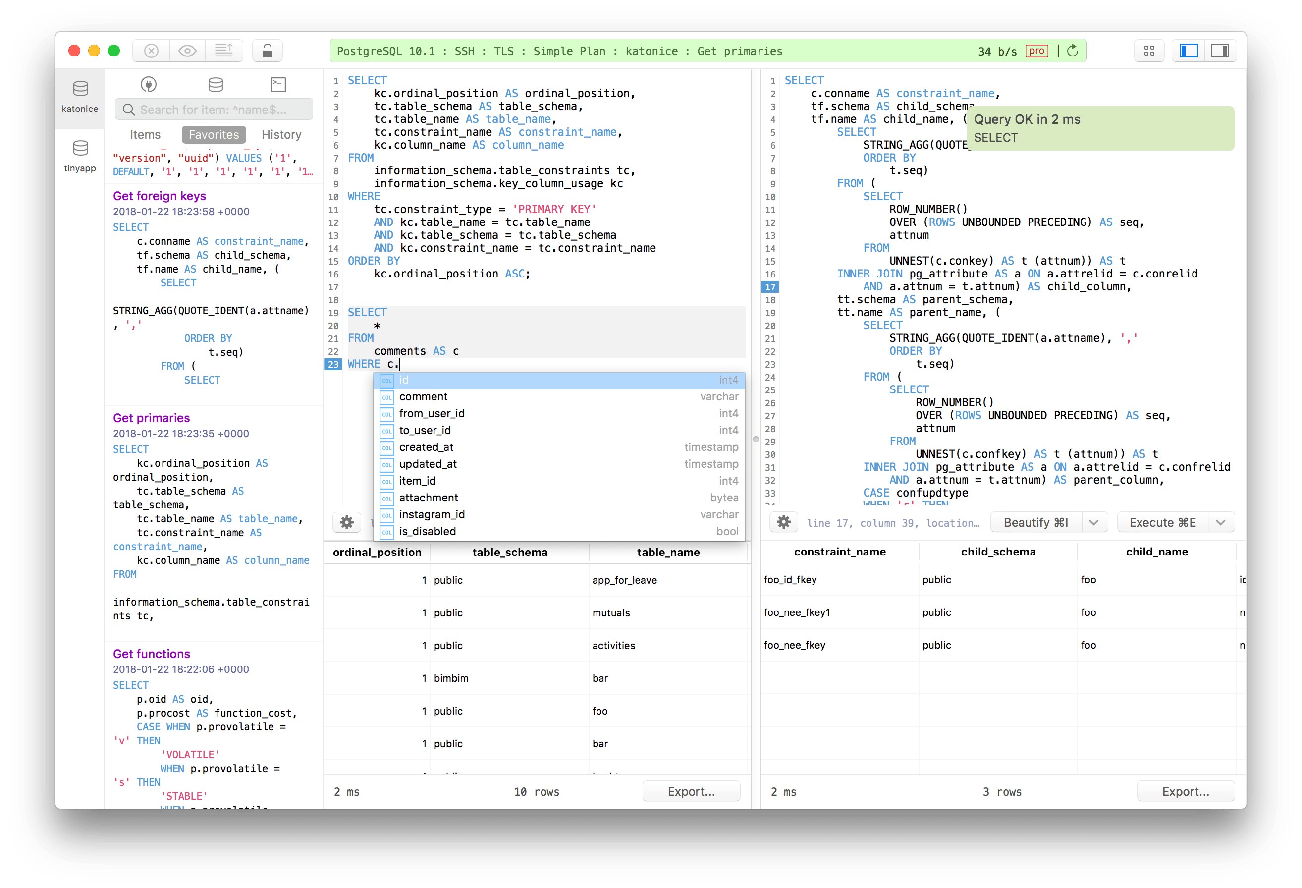 在编辑命令时,TablePlus 会自动向你推荐字段名称: