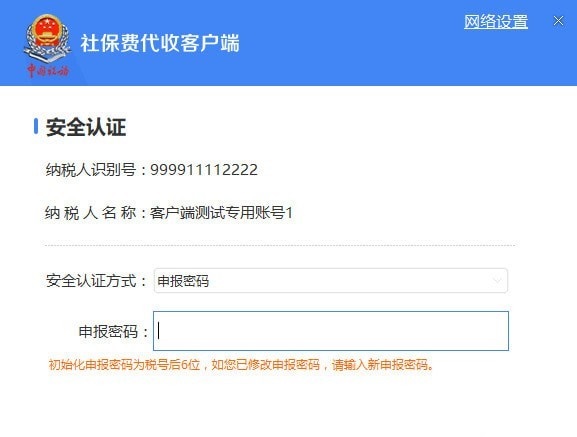 温馨提示:目前“社保费代收客户端”安全认证方式仅支持申报密码方式。