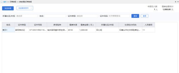 打开养老保险日常申报页面,会自动加载待申报信息,该数据来自“缴费信息采集”信息中的录入或导入的信息。
