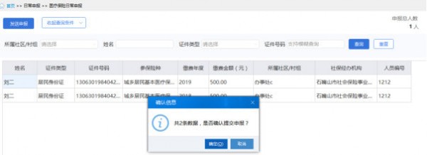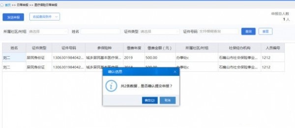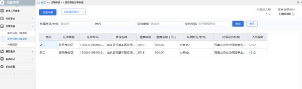 打开医疗保险日常申报页面,会自动加载申报信息,该信息来自“缴费信息采集”中的医疗采集信息。