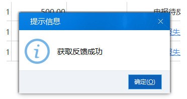 数据申报之后,软件会在20秒之后自动获取反馈,获取反馈成功后会给出提示