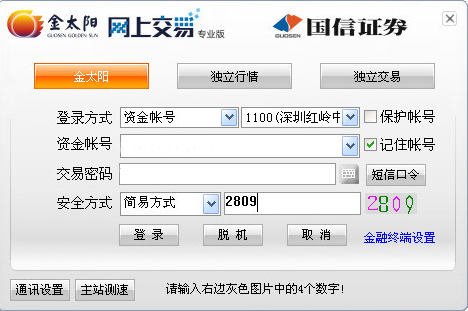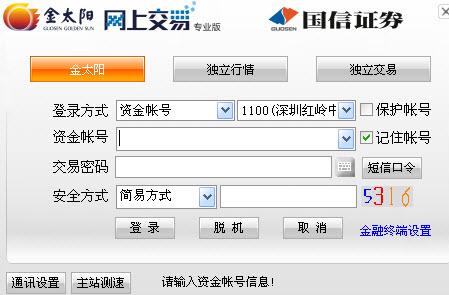 1、双击打开金太阳国信证券桌面快捷方式,打开软件后,需要您输入账号和密码才可以登录软件。