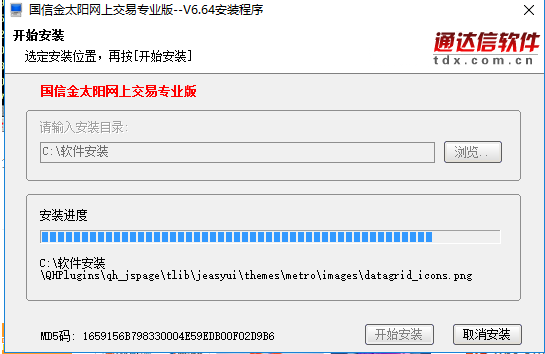 2、金太阳国信证券开始安装,您可以点击【开始安装】,软件会默认安装,或者您可以单击【浏览】,弹出安装位置界面,您可以自己选择金太阳国信证券安装位置,选择完成后点击【开始安装】就可以了。