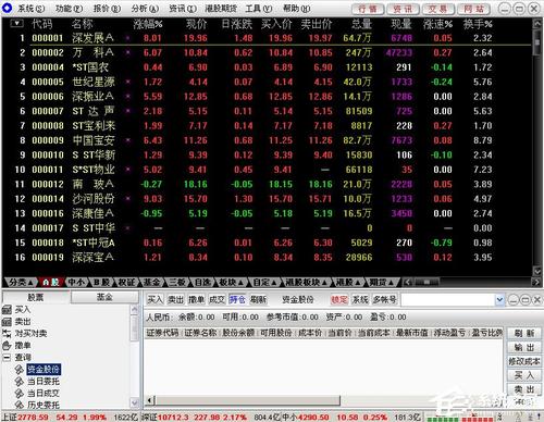 显示自选股列表,通过功能键“添加、删除”进行自选股设置;可将自选股上下移动,可根据行情字段对自选股进行排序。