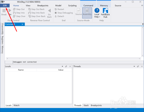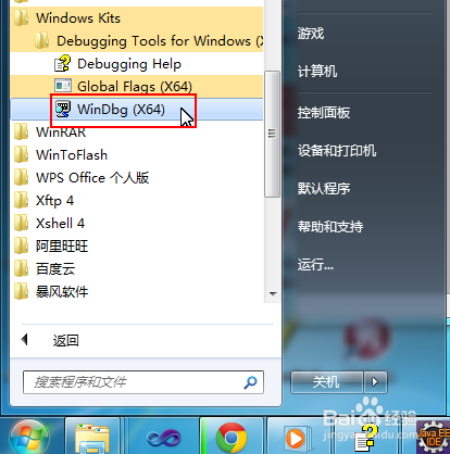 2.安装成功后,可以我开始菜单,程序中找到并启动Windbg。