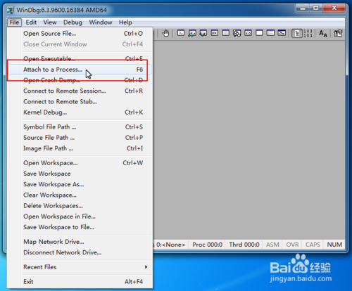 4..我们可以选择文件(File)菜单》附加到一个进程。