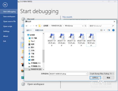 演示如何定位蓝屏的错误1.在右上角找到文件