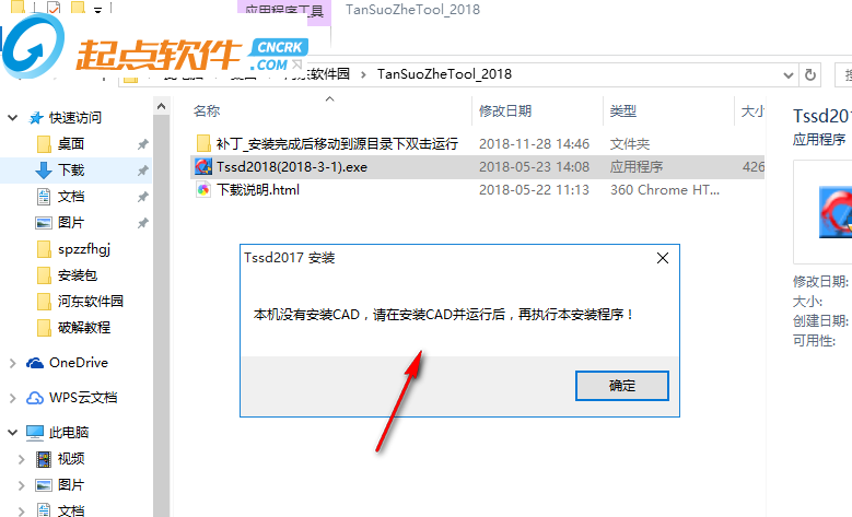 1、打开探索者2018安装界面,提示需要安装AutoCAD,将软件安装到电脑才能启动探索者2018
