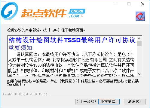 4、请认真阅读:本最终用户许可协议(以下称《协议》)是您(个人或单一机构团体)与 北京探索者软件股份有限公司 之间有关结构设计绘图软件TSSD的法律协议