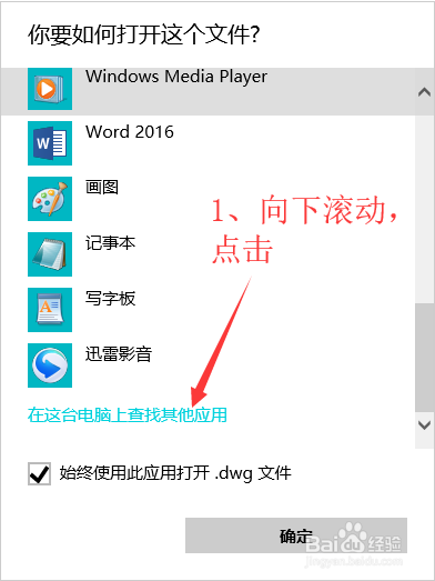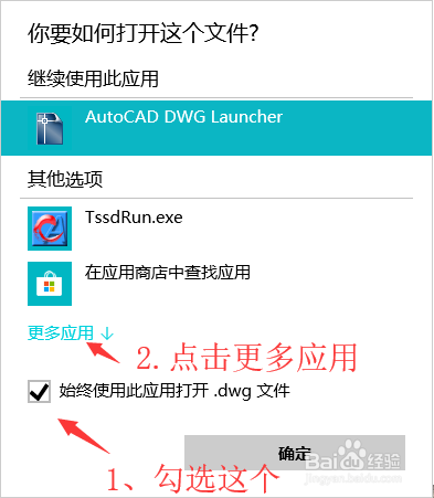 勾选“始终使用此应用打开.dwg文件”,然后选择“更多应用↓”。