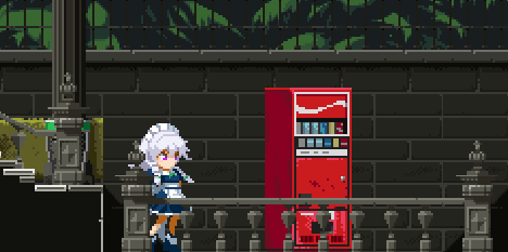 得到怀表后这边暂时没事了。出门往右,见到一些自动贩卖机。