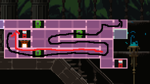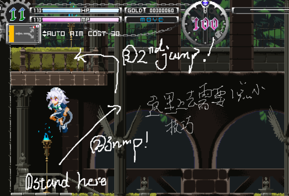 注意这边还有一个隐藏关。尽管很多人都认为这里需要二段跳,其实没必要。我在前面就已经说过下a有滞空作用,现在它可以派上用场了。