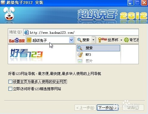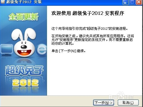 安装点击下载的安装程序,在出现的【欢迎使用超级兔子安装程序】界面中选择“下一步”按钮。