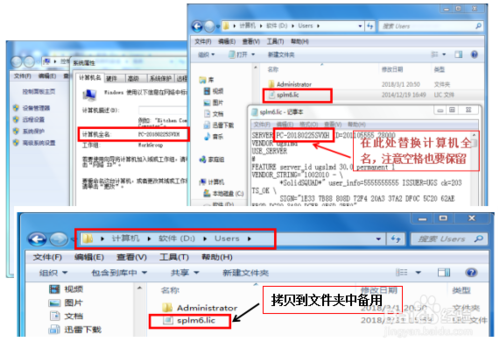 用记事本打开UG安装包破解文件中“splm6.lic”文件,并替换电脑全名保存文件,同时拷贝该文件到软件安装盘中备用,一般习惯放置D盘,注意放到英文文件夹中,如图示界面。