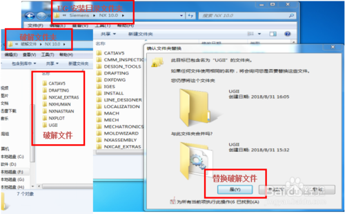 找到UG安装目录,替换破解文件夹和“ugslmd.exe”、替换了电脑名称的“splm6.lic”文件,如图示界面。