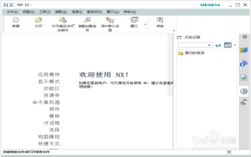 鼠标点击电脑“开始”命令栏,将UG图标发送到桌面快捷方式,完成UG安装,打开UG,如图示界面。