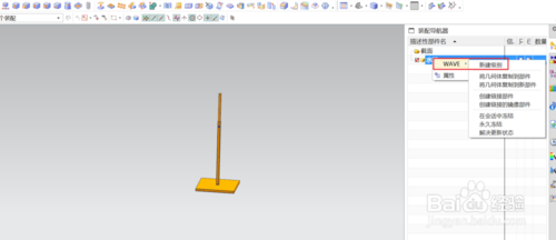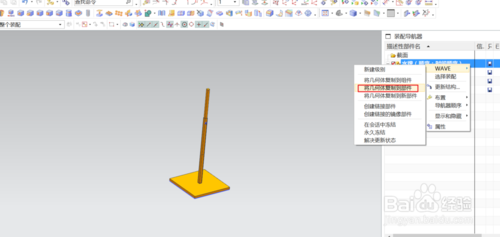 这个时侯,就可以对组件进行装配的各种操作了。当有组件要修改时,可在装配导航器的模型上右击鼠标选“WAVE”选 “将几何体复制到部件”,根据对话框将要添加几何体复制到部件中。