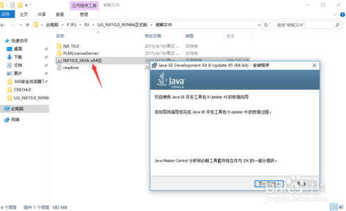 在安装包“破解文件”文件夹找到“NX10.0_JAVA-x64位”文件,以管理员身份运行安装此JAVA软件。(具体安装步骤在此不说明了)