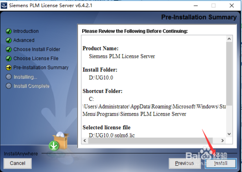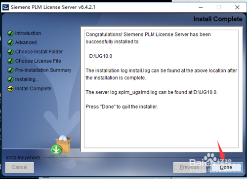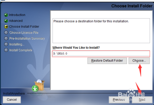 单击”Choose",选择前面创建的文件夹(UG10.0)作为安装路径。