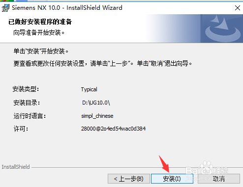 单击”更改“把安装路径改为前面创建的路径(D盘\UG10.0)。