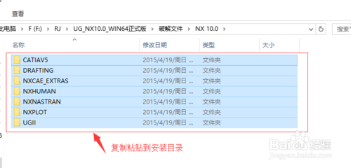 将安装包里的“破解文件”文件夹里”UG10.0“文件夹里的所有文件夹复制粘贴到安装目录文件夹(粘贴时选择替换)。