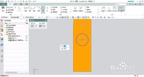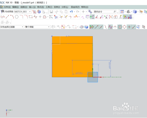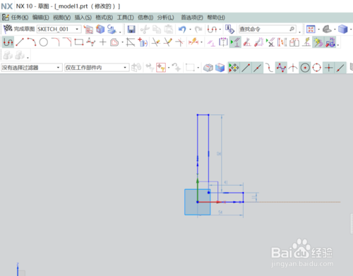 这草绘页面将会是使用这软件经常进入的页面之一,熟悉这里非常重要。使用工具栏里的相应工具大概绘出截面线(尺寸接近就行),然后双击要修改的尺寸数,更改为正确的尺寸。点击左上角的完成草图,退出草绘进入建模页面。
