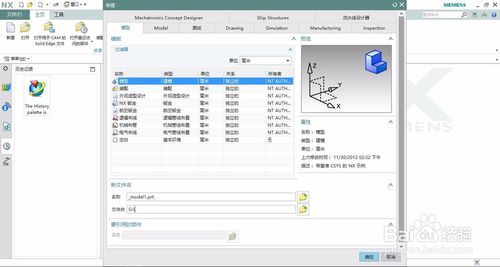 双击或者右键选择打开UG软件,该经验以UG10.0为例。打开文件文件后点击新建图标,新建一个模型文件,命名为_model1.prt,点击OK。