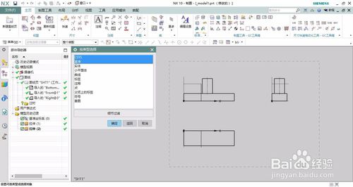 在自动弹出的视图创建向导中,我们可以选择前视图、右视图、俯视图。我们可以把基准隐藏(快捷键ctrl+B选择过滤类型。)(我们可发现这样并不是真正的CAD图,而且还有遗漏)