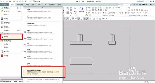 2.很多设计师都是在UG中设计好视角,然后到CAD中进行编辑;这时就需要为其执行导出-AUTOCAD DWG/DXF格式