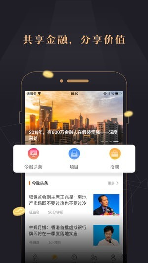 今融道APP是一款以北京金融街、上海陆家嘴、深圳福田中心、香港中环为核心发起的金融连接平台,今融道APP秉承共享金融,分享价值的用户理念,精准匹配金融问答、金融资讯、项目平台、金融招聘、圈层社交、数据研究等多维度的金融信息服务。今融道APP用户已涵盖各大金融机构、上市公司及大中型企业投融资人员,无论你是行业资深大咖,还是初出茅庐的金融小生,在这里都可以找到自己的圈子。