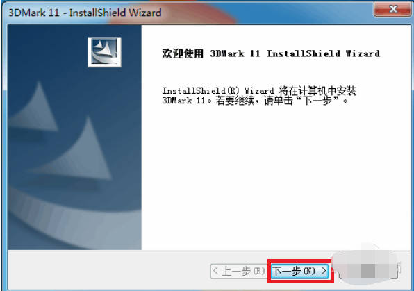 2、进入3DMark 11中文版安装向导界面,点下一步
