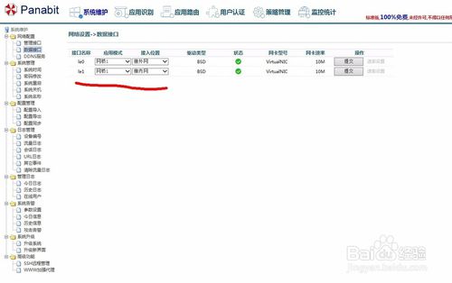 Panabit简单上网设置进到PA界面后,先设置内外网的接口。系统维护-网络配置-数据接口