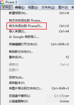 打开Picasa,点击“文件”-“将文件添加到Picasa”。