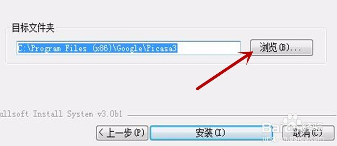 之后弹出选择安装位置的界面,点击如图的“浏览”按键