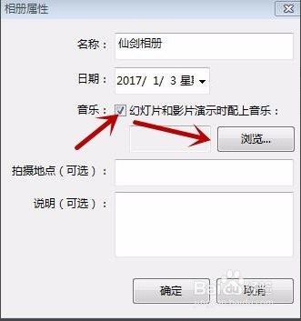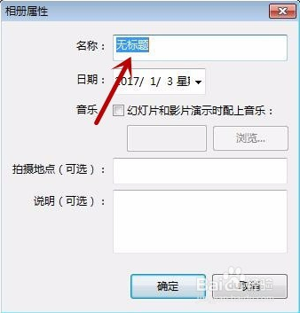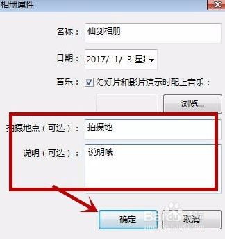 之后还可以在拍摄地点,输入自己需要的地点,在说明中,对这个相册进行详细的介绍。如图所示。