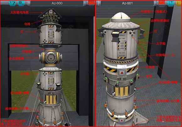 首先我们需要两个带有对接端口的飞行器,上面两个是模型大家可参考一下。首先要有一个带端口的飞行器在轨、
