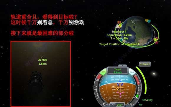 在十分接近的时候,需要减速至0.2m/s之下,再调整对接端口使其对齐,此时螺旋仪上的正反标记已经不需要看了。