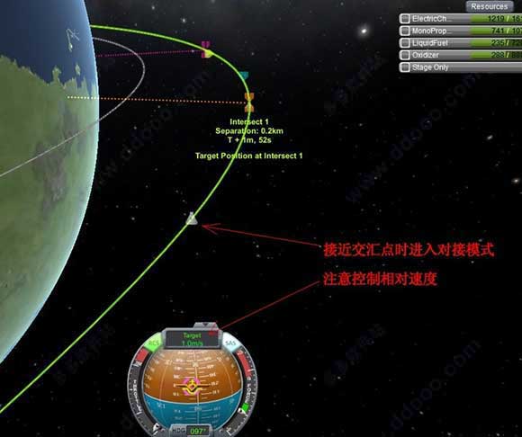等两各飞行器接近(还没到)交汇点时,再进入对接模式。