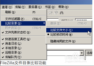 文件夹内容比较就是对两台不同的机器上的相关目录下的内容进行比较,然后把不相同的内容显示出来,这对于保持版本一致性非常有用。通过菜单【查看】—>【比较目录】我们就可以比较出两个目录下不同的内容。